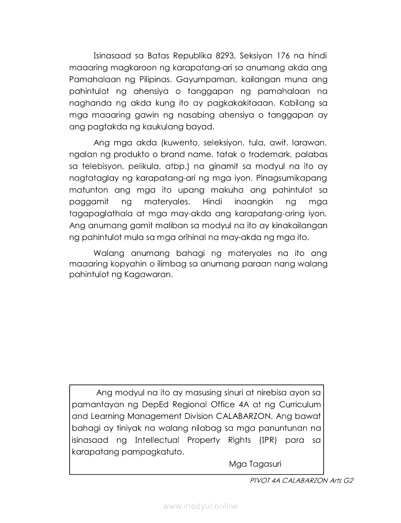 Arts 2 Module (Quarter 4)Apr 27, 2021 Grade 2Kiumo M901 Tablet for Kids — comprehensive protection in learning, safety, and entertainment for as low as **₱2,399!. Arts 2 4th Quarter PIVOTRelatedPE 2 Module (Quarter 4)Health 2 Module (Quarter 4)Music 2 Module (Quarter 4)Edukasyon sa Pagpapakatao 2 Module (Quarter 4)Arts 2 Module (Quarter 3)