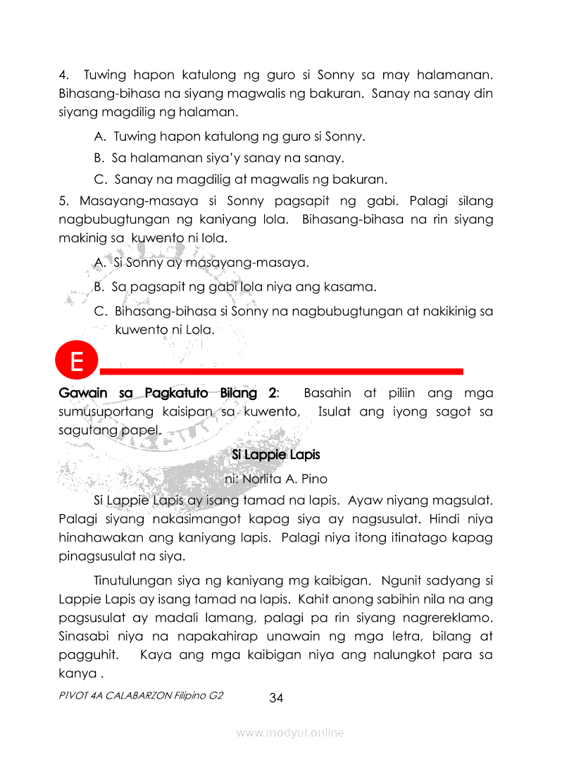 Filipino 2 Module (Quarter 4)Apr 22, 2021 Grade 2Kiumo M901 Tablet for Kids — comprehensive protection in learning, safety, and entertainment for as low as **₱2,399!. Filipino 2 4th Quarter PIVOTRelatedPE 2 Module (Quarter 4)Health 2 Module (Quarter 4)Music 2 Module (Quarter 4)Edukasyon sa Pagpapakatao 2 Module (Quarter 4)Arts 2 Module (Quarter 4)