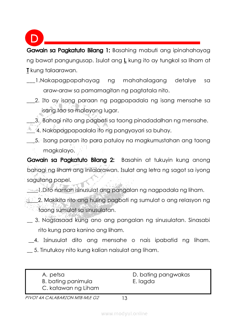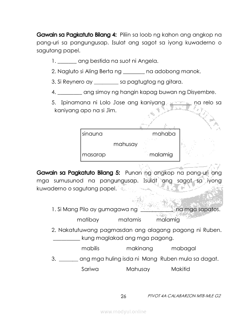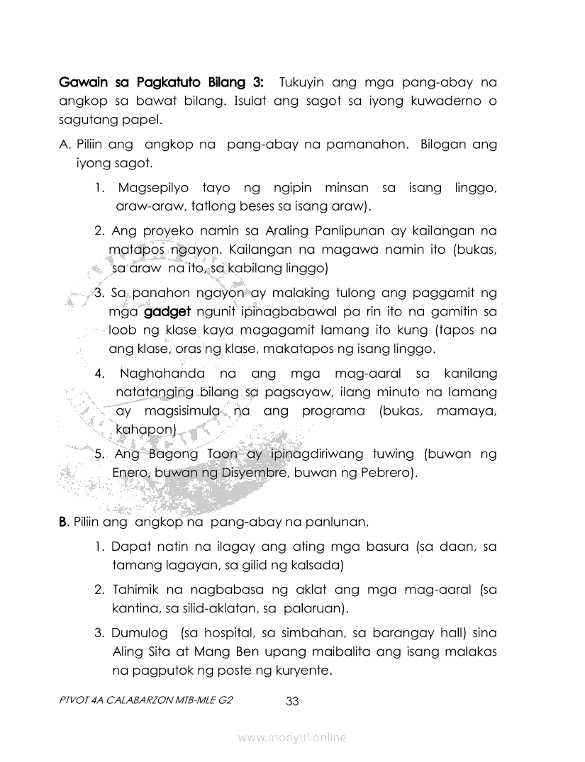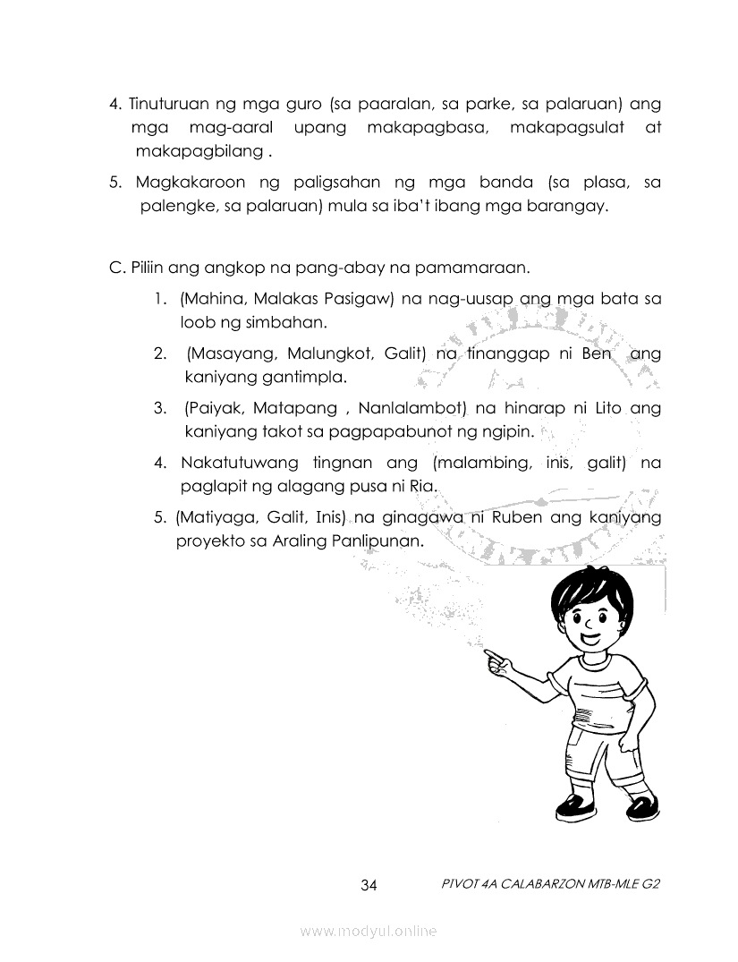 MTB-MLE 2 Module (Quarter 4)Apr 27, 2021 Grade 2Kiumo M901 Tablet for Kids — comprehensive protection in learning, safety, and entertainment for as low as **₱2,399!. MTB-MLE 2 4th Quarter PIVOTRelatedPE 2 Module (Quarter 4)Health 2 Module (Quarter 4)Music 2 Module (Quarter 4)Edukasyon sa Pagpapakatao 2 Module (Quarter 4)Arts 2 Module (Quarter 4)