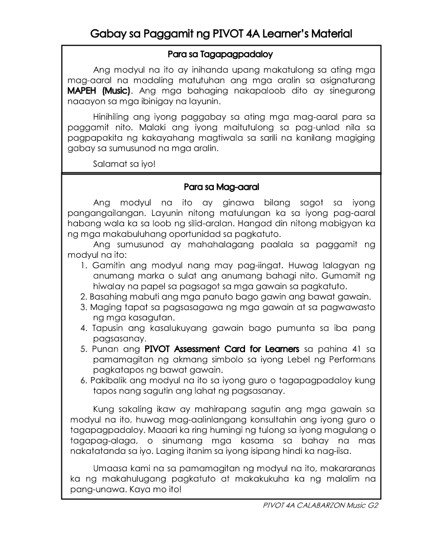 Music 2 Module (Quarter 3)Apr 27, 2021 Grade 2Kiumo M901 Tablet for Kids — comprehensive protection in learning, safety, and entertainment for as low as **₱2,399!. Music 2 3rd Quarter PIVOTRelatedPE 2 Module (Quarter 3)Health 2 Module (Quarter 3)Music 2 Module (Quarter 4)Edukasyon sa Pagpapakatao 2 Module (Quarter 3)Arts 2 Module (Quarter 3)