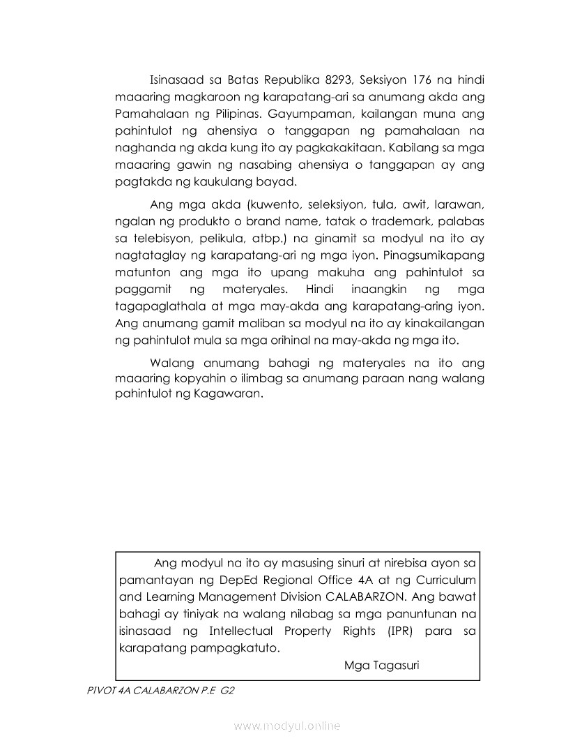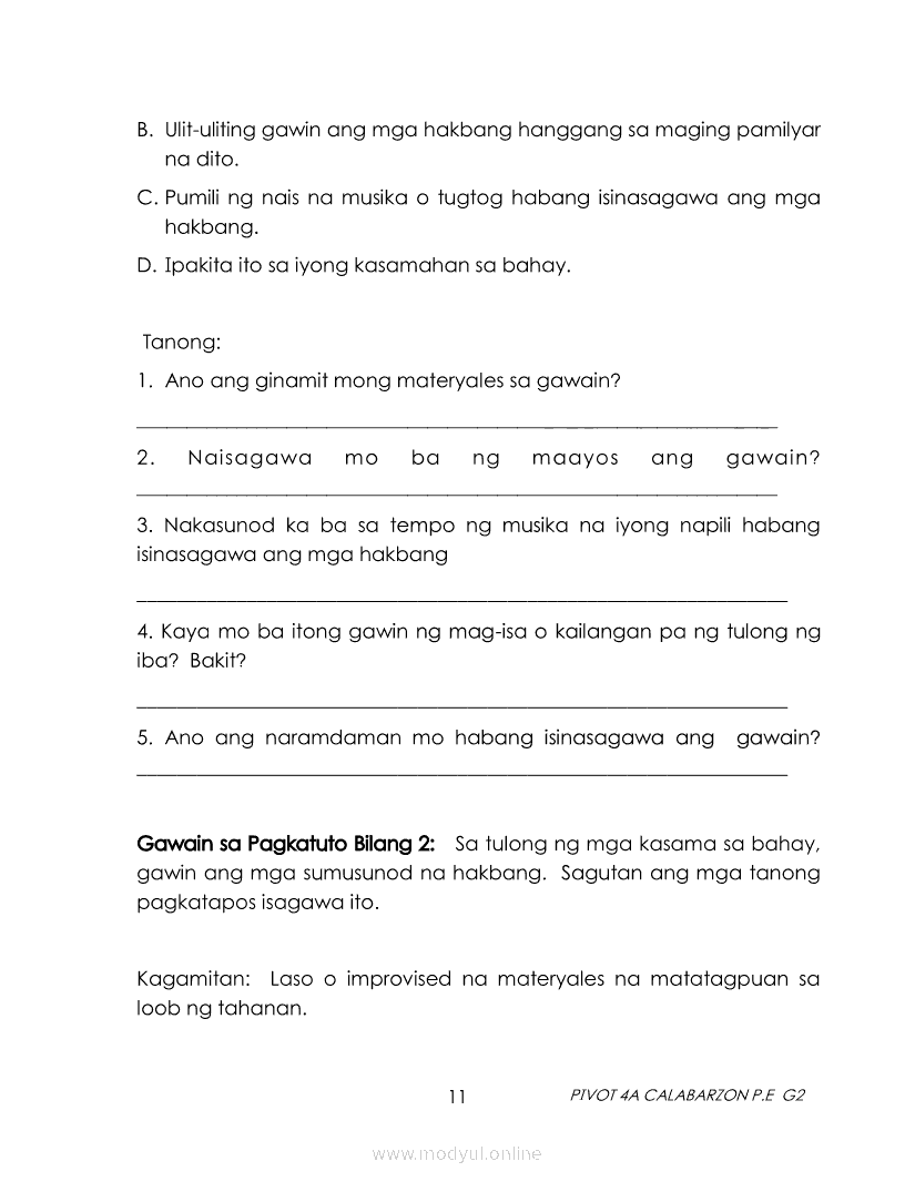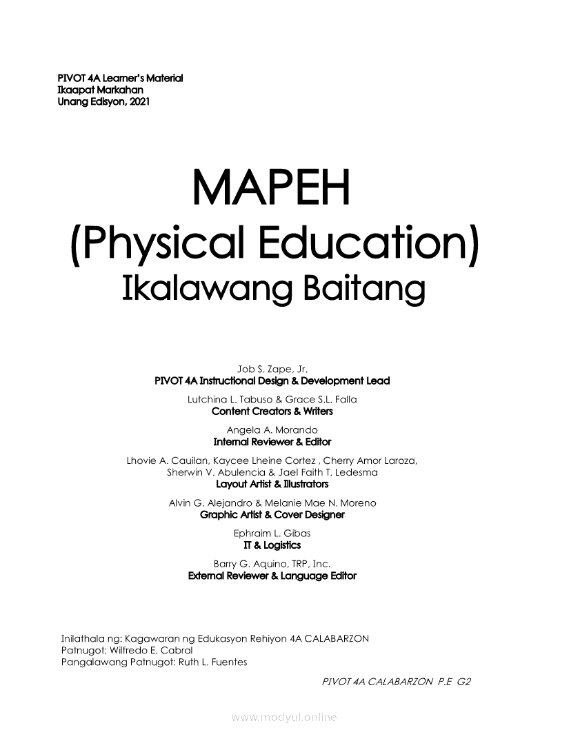 PE 2 Module (Quarter 4)Apr 27, 2021 Grade 2Kiumo M901 Tablet for Kids — comprehensive protection in learning, safety, and entertainment for as low as **₱2,399!. PE 2 4th Quarter PIVOTRelatedPE 2 Module (Quarter 3)Health 2 Module (Quarter 4)Music 2 Module (Quarter 4)Edukasyon sa Pagpapakatao 2 Module (Quarter 4)Arts 2 Module (Quarter 4)